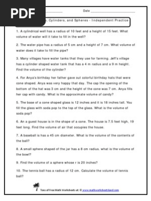 Volume Of Cylinders Cones And Spheres Worksheets Spheres Worksheets Lectures Room