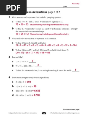 Bridges In Mathematics Grade 5 Home Connections Answer Key Pgs 15 18 Teaching Mathematics